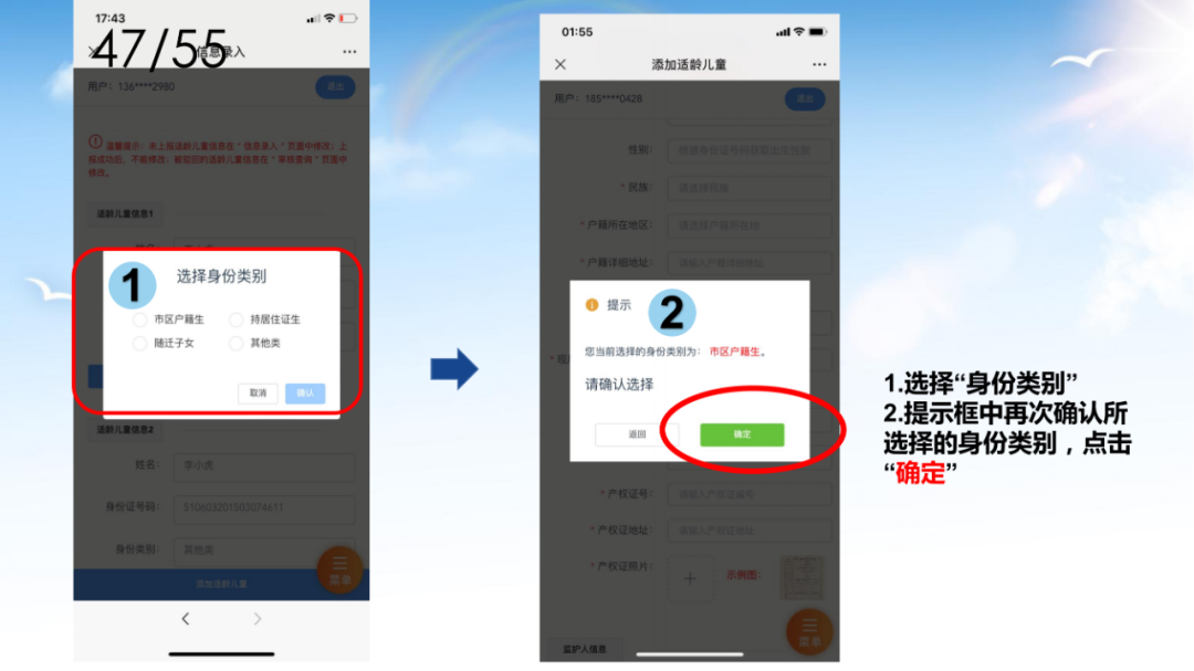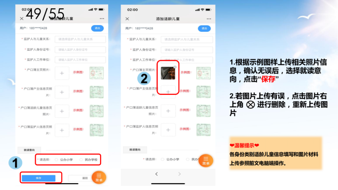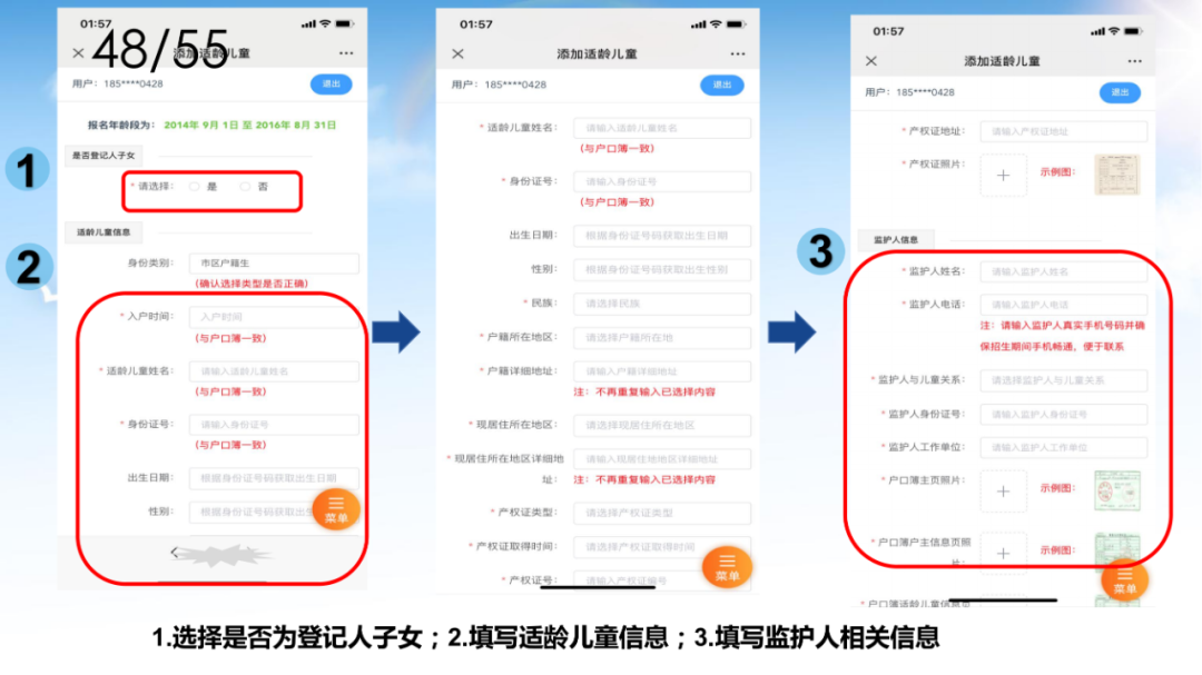 6、选择是否为登记人子女,填写适龄儿童信息,填写监护人相关信息