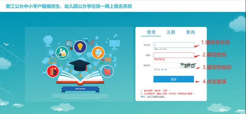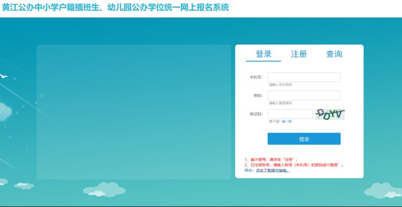 打开浏览器,网址:点击即可进入或手机关注“黄江教育”微信公众号——服务——服务指南——插班及公办幼平台,进入系统首页。