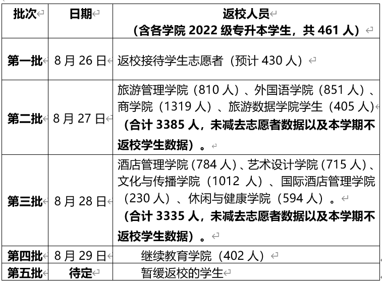 1.在中、高风险地区(实时更新)的学生暂缓返校;待所在地区降至常态化防控区域等级后再向所在二级学院提交返校申请,经审批同意后方可返校。