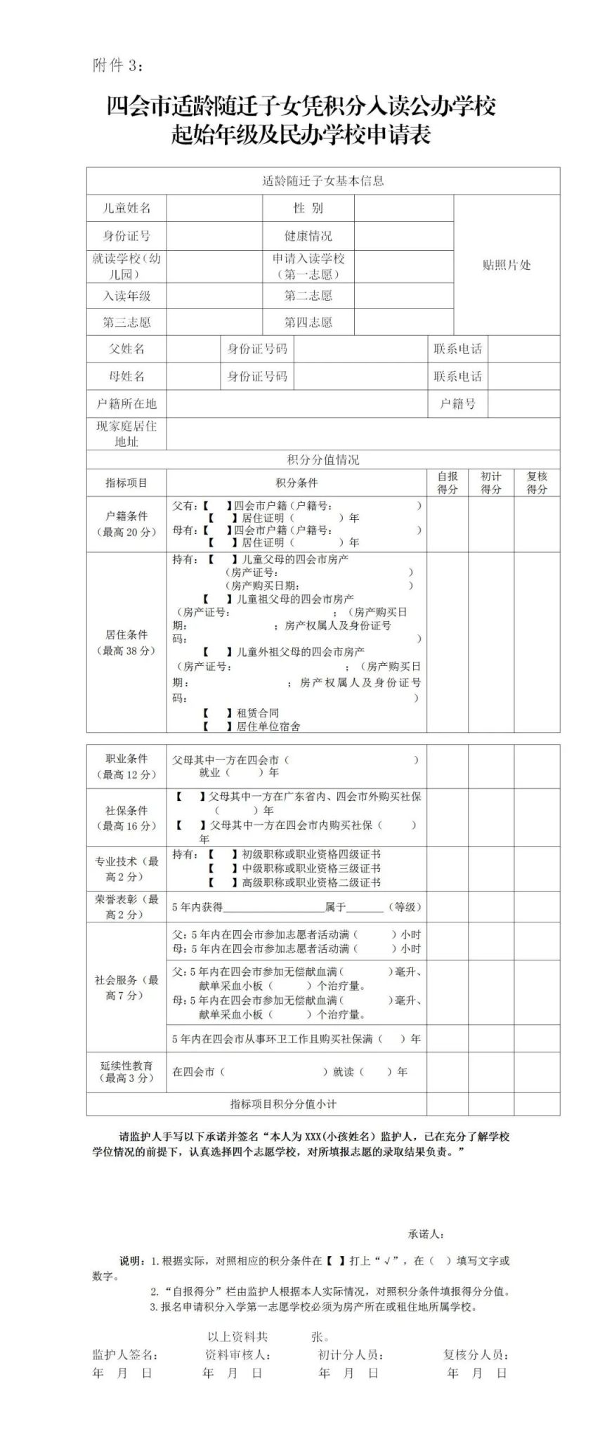 》》》附件3 四会市适龄随迁子女凭积分入读公办学校起始年级及民办学校申请表