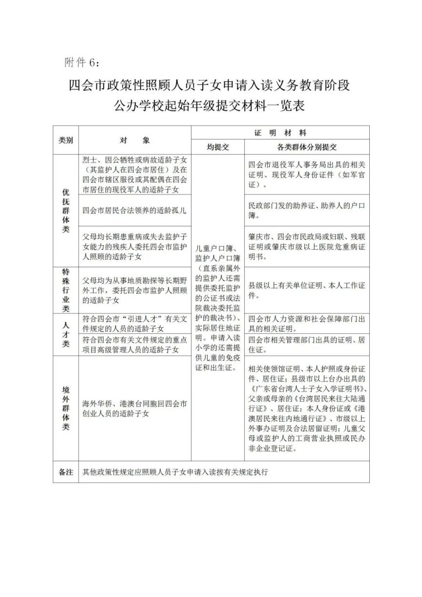 》》》附件6 四会市政策性照顾人员子女申请入读义务教育阶段公办学校起始年级提交材料一览