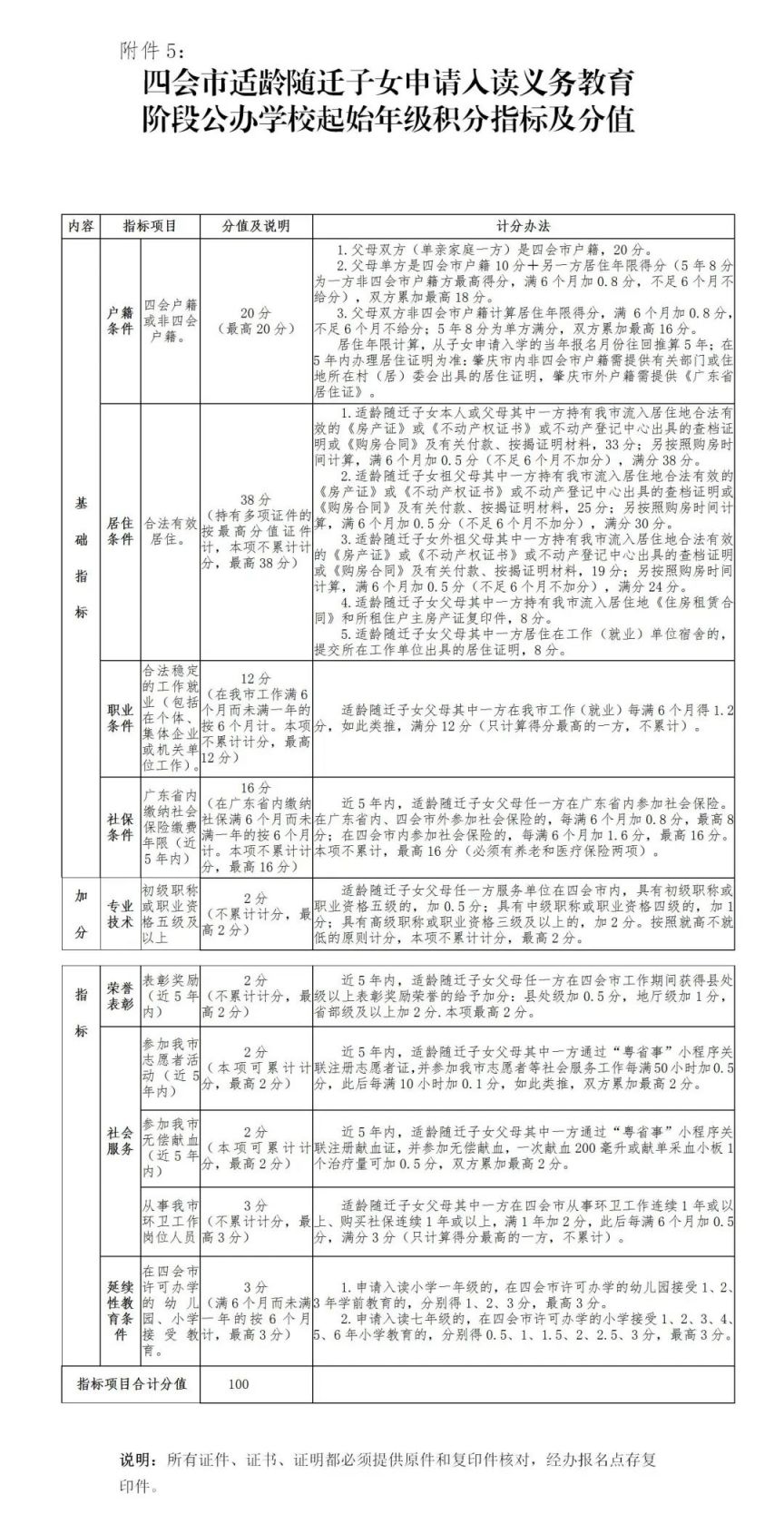 》》》附件5 四会市适龄随迁子女申请入读义务教育阶段公办学校起始年级积分指标及分值