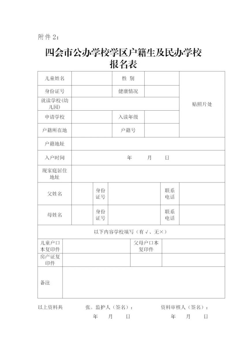 》》》附件2 四会市公办学校学区户籍生及民办学校报名表