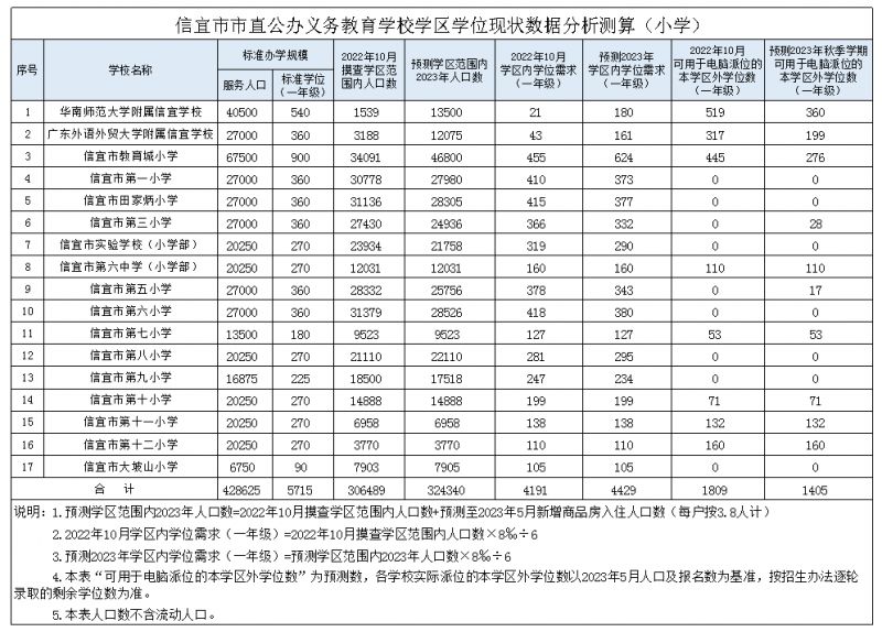 2.信宜市市直公办义务教育学校学区学位现状数据分析测算(小学)