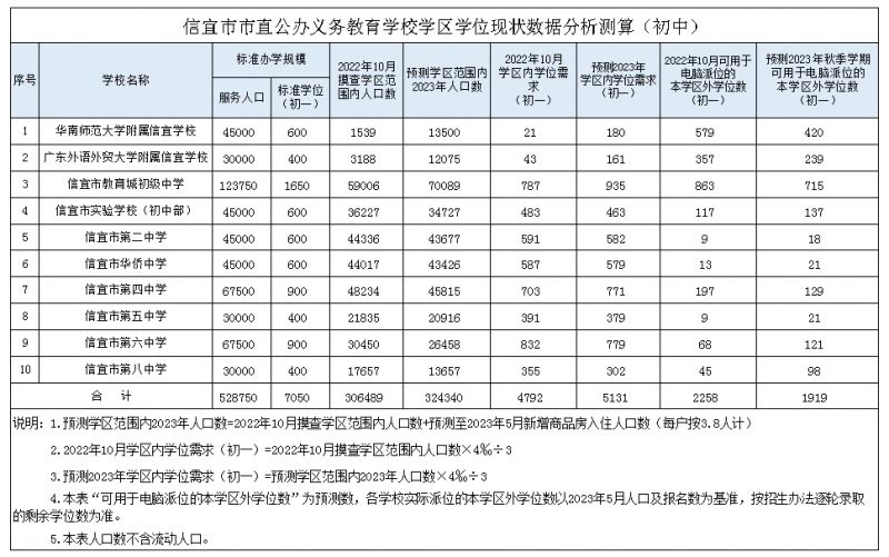 3.信宜市市直公办义务教育学校学区学位现状数据分析测算(初中)