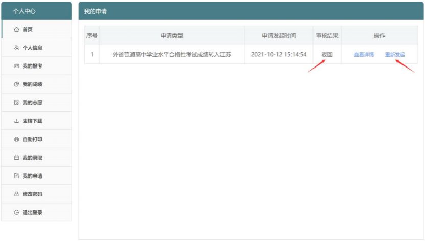 12、审核结果为“驳回”时,可点击“重新发起”进入重新发起申请流程。