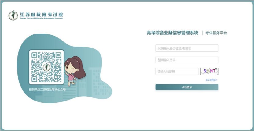 1、输入https://gk.jseea.cn 网址并登录考生服务平台。