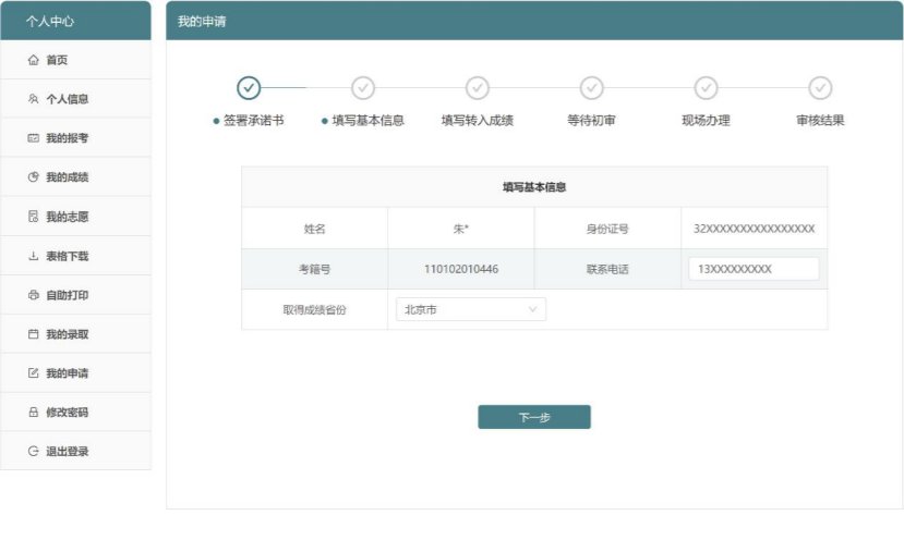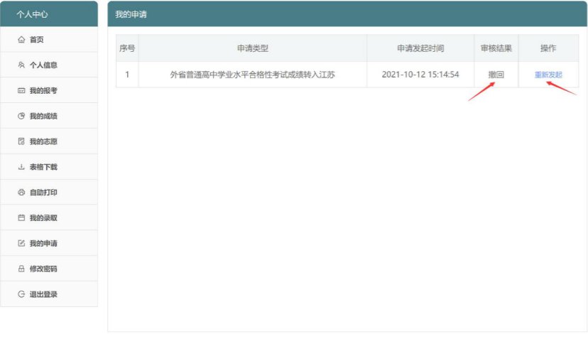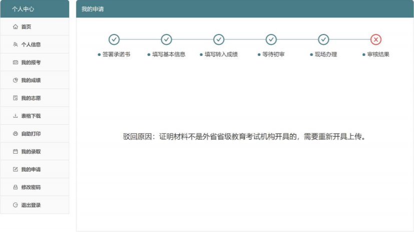 9、审核结果为“已申请未初审”时,可通过点击“撤回”中断申请流程,主要用于修改(添加、删除)科目及成绩、补充(更换)证明材料、或者放弃申请。