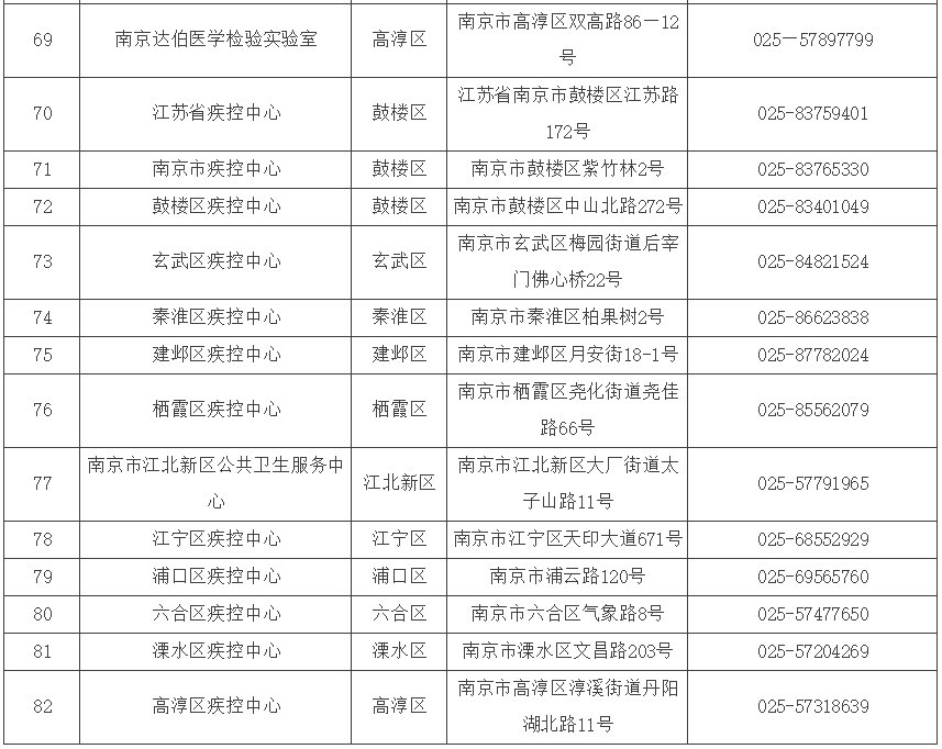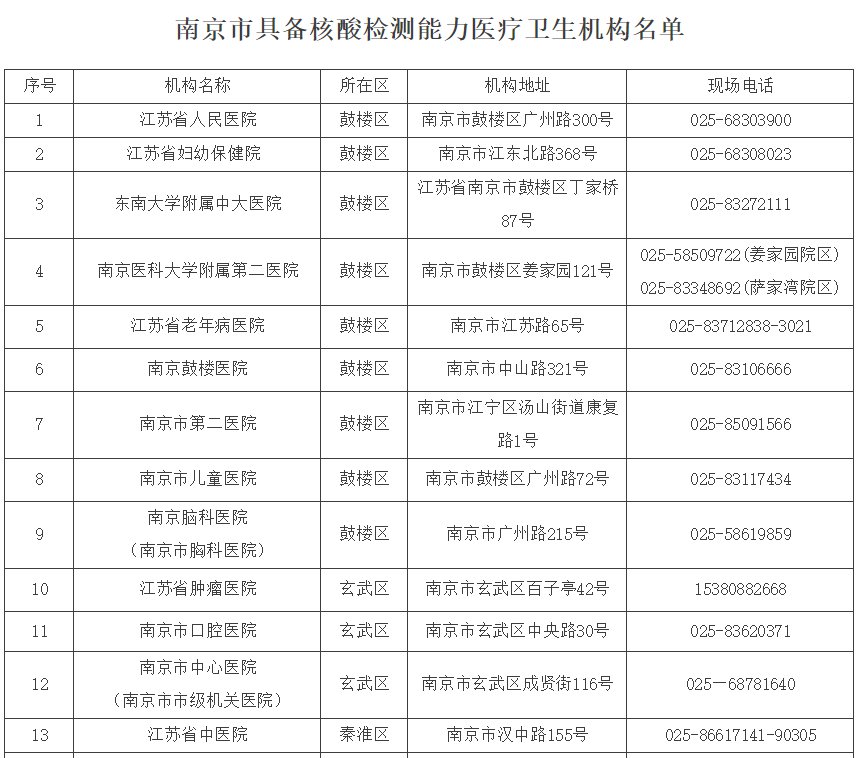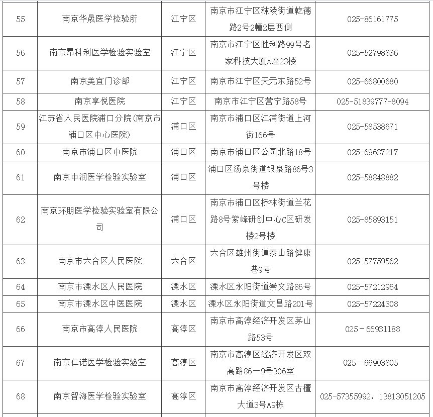 其他南京市核酸检测点如下: