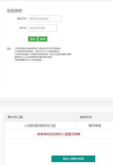 2.输入身份证和手机号点击登陆进行修改信息,修改完成后提交。