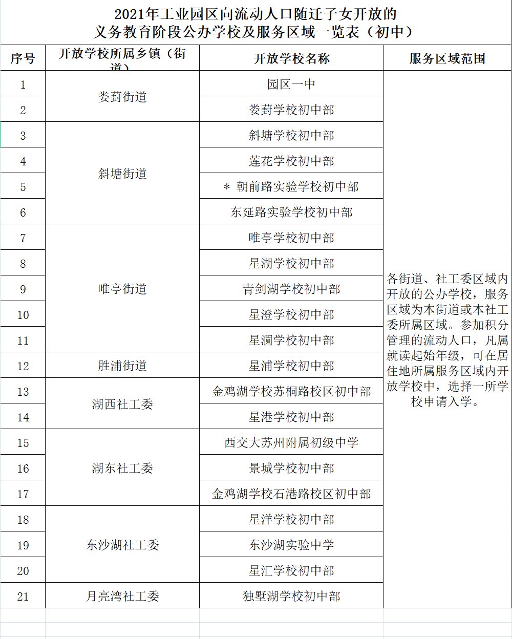 【2021苏州园区积分入学开放公办学校和服务区域名单】