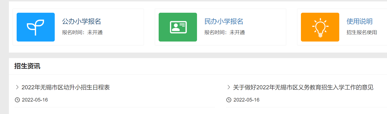 进入“无锡市小学入学服务系统”,页面右上角点击“注册登录”