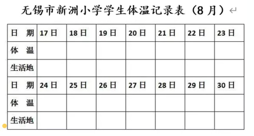 8月17日起,所有学生做好居家自我观察和检测,每日体温等健康状况采用纸质表格填写(样表附后,可打印或自制),开学后交班主任统一由学校校医室存档。