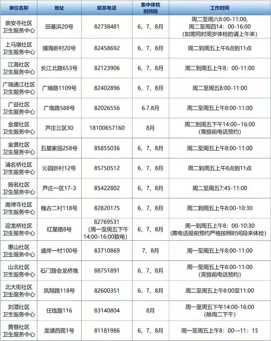 注:由于新冠疫苗接种安排,各社区入园入托体检时间可能有所变动,建议提前电话咨询