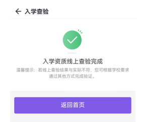 提交成功后,提示“入学资质线上查验完成”。
