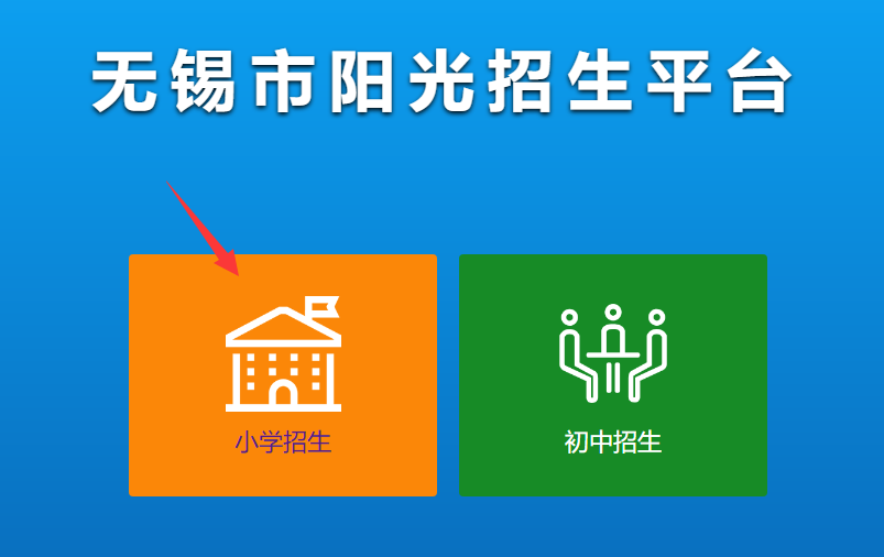 登录“无锡市阳光招生平台”后,选择“小学招生”