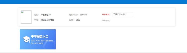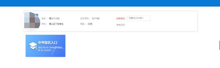 2、信息填报注册成功后,会直接进入中考报名系统,显示注册时的信息及中考报名入口,点击 “中考报名入口”,进行报名信息填报。如图所示: