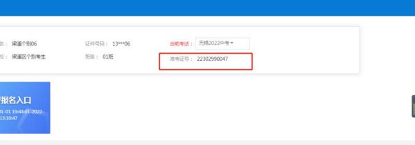 7、查看准考证号报名信息审核通过后,考生即可登录报名平台,在首页查看准考证号。如图所示: