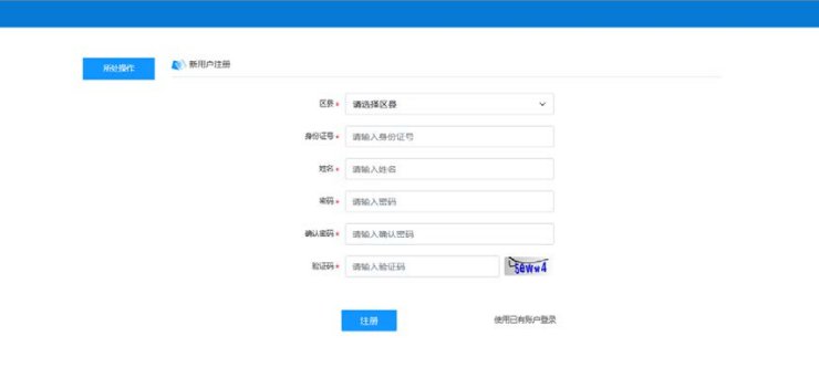 考生根据户籍所在区县、身份证号、姓名等信息完成新用户注册。如图所示: