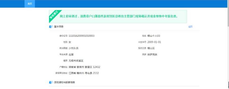 如果报名信息审核通过,页面会提示网上初审通过及其他相关提醒。审核通过后,报名信息不能再修改。如图所示: