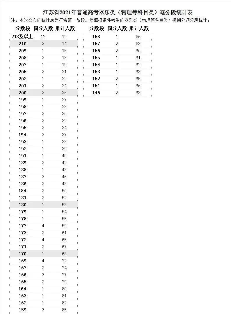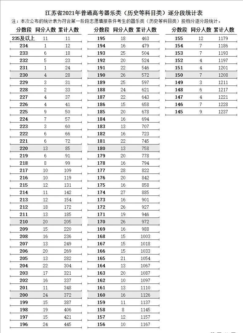 2021江苏高考器乐分数段统计表(2021年江苏高考声乐本科分数线)