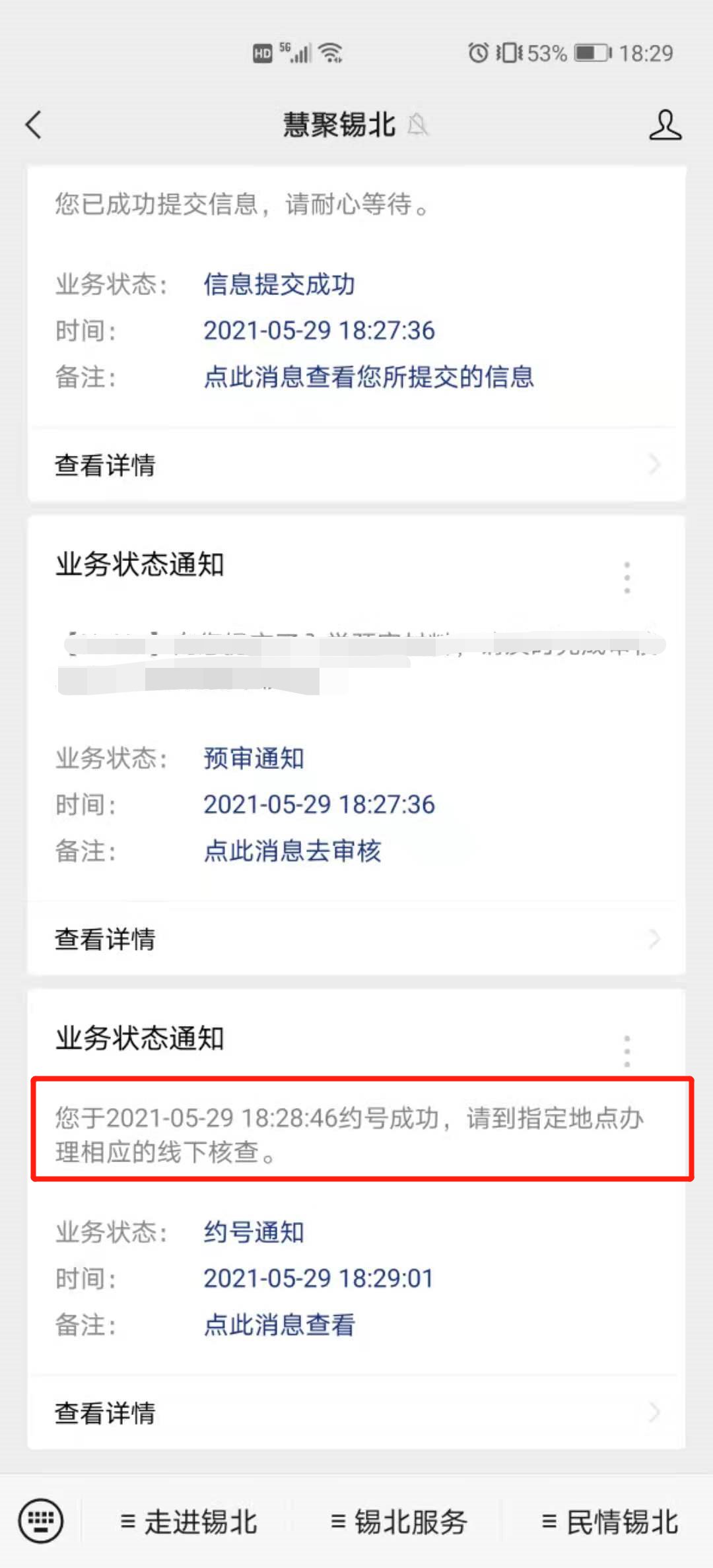 (六)成功取号后将在慧聚锡北公众号上收到取号成功的通知。