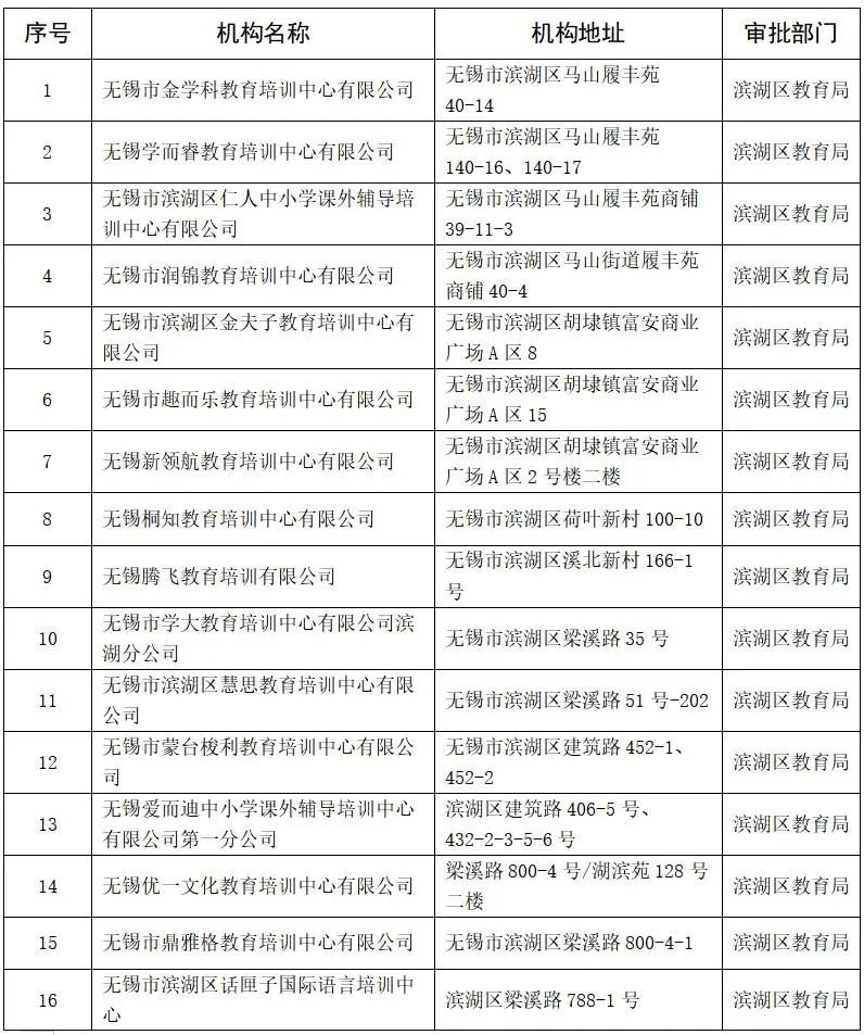 滨湖首批准予复课学科类(外语类)校外培训机构“白名单”(点击图片可放大看)ptz育儿早教网