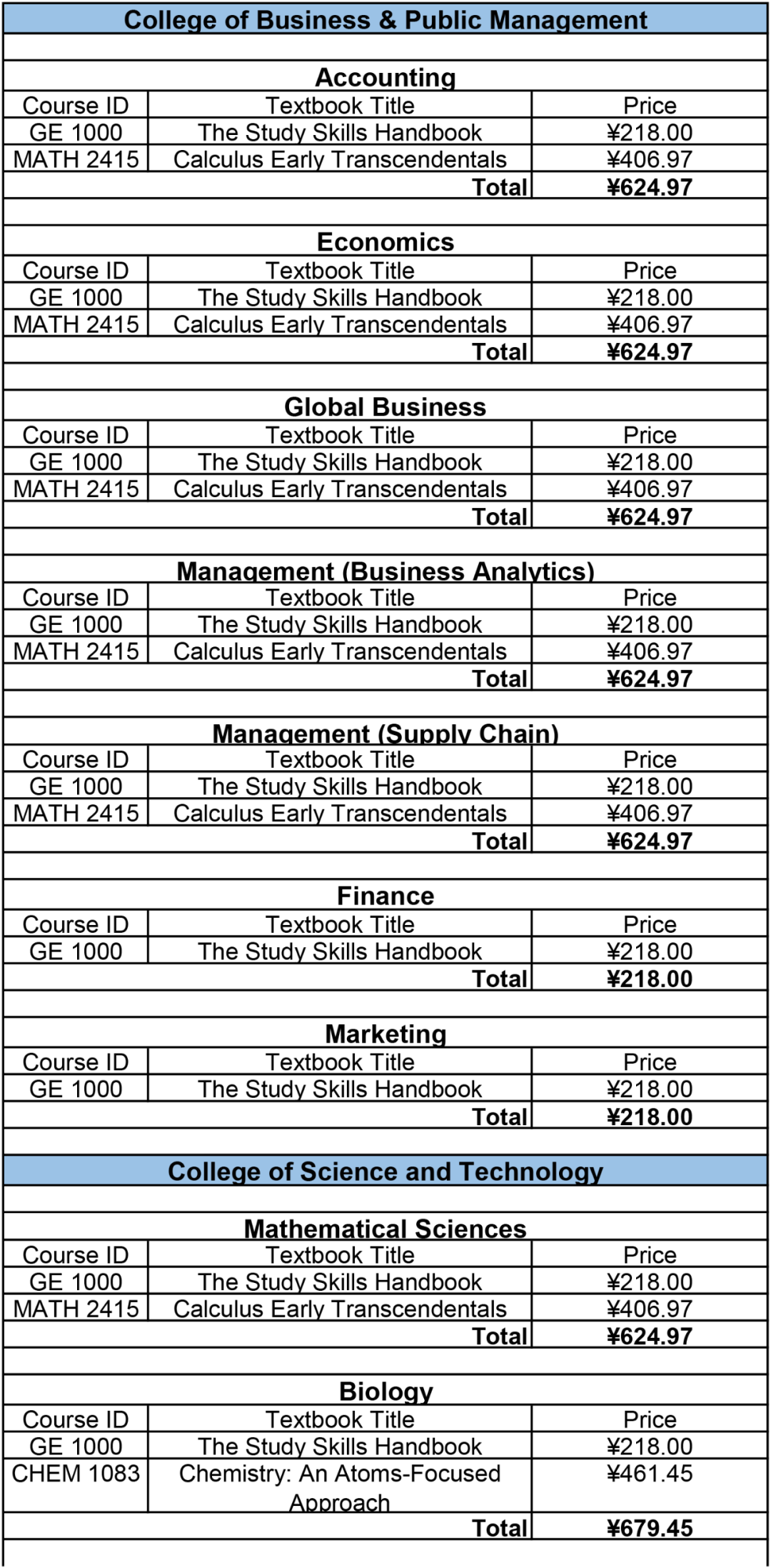 Accounting + Global Business + Management + Economics + Mathematical Science