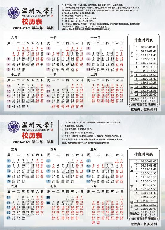 温州大学2020-2021学年校历表及作息时间表PrS育儿早教网