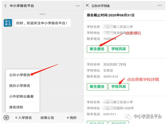 第三步:选择公办小学报名入口并选择报名学校,选择学校时可查看学校详情。