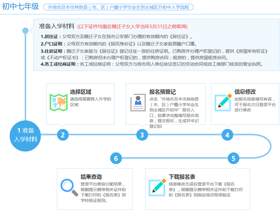 入学材料准备(以下证件均需在随迁子女入学当年5月31日之前取得)