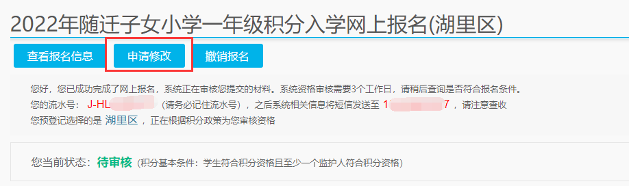 报名提交后,如填写信息有误,点击“申请修改”,待教育局审核通过后,可对提交信息进行修正。