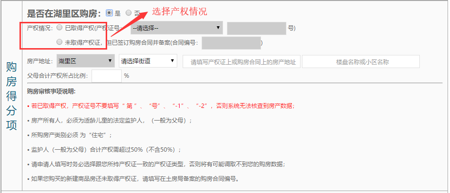 是否在湖里区购房需家长根据自己的实际购房情况点选。
