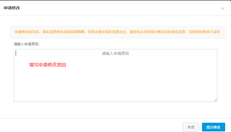 2.申请修改后,系统将重新审核修改后的报名信息。因此为缩短系统排队审核时间,请尽量减少申请修改的次数。