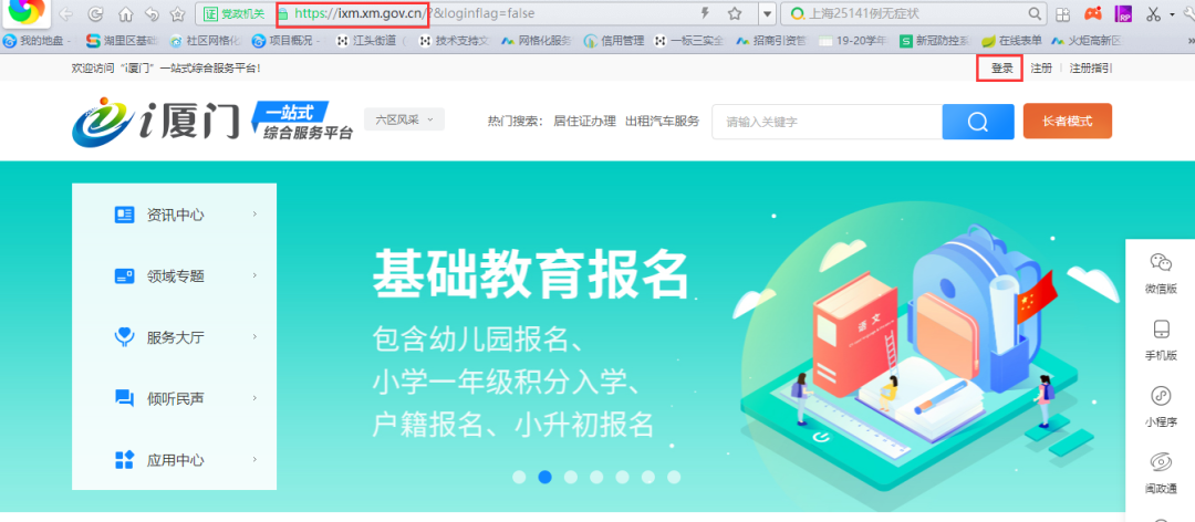1、通过浏览器输入https://ixm.xm.gov.cn;或通过浏览器搜索“i厦门”,进入“i厦门”一站式综合服务平台。