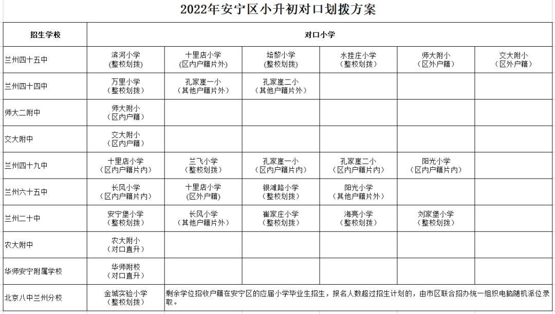 孔家崖二小:小学招生片内安宁户籍的学生划拨到兰州四十九中;其余学生划拨到兰州四十四中。