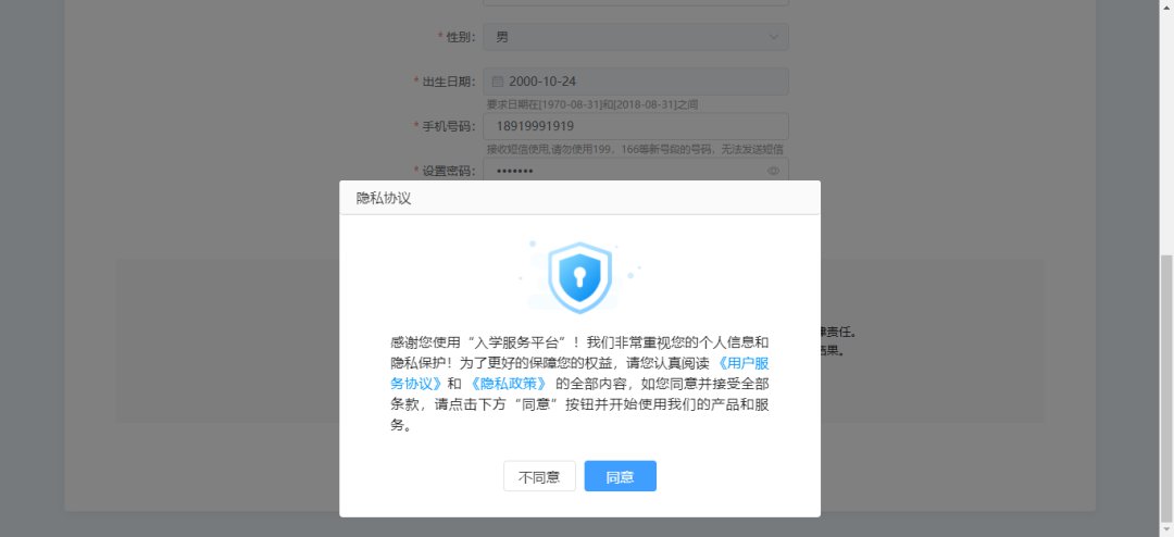 用户注册界面请注意区分自己属于哪一类,一经选择无法自行修改,性别、出生日期按照身份证号自动同步,无需填写,其余信息在引导下进行填写。(注册儿童年龄为6-8岁,不符合此年龄段的无法注册;密码按照字母加数字的组合设置,且不要过于简单,以免泄露;