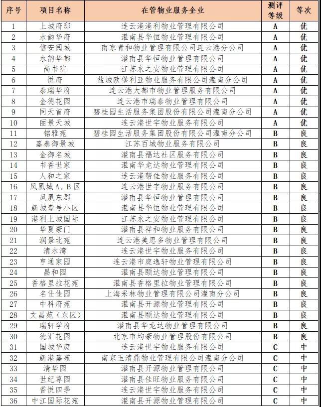 对于测评结果将强化考核应用,实行流动红、黄旗制度,并向业主公告,对测评为C级物业服务企业要求限期整改,测评D级的物业服务企业,将约谈物业企业负责人,并进行限期整改。对于连续2次列入极差名单且整改不到位的物业服务企业取消参加评先评优、优秀项目申报等资格,并限制其2年内不得参加物业招投标。情节严重的直至清退出灌南物业市场。