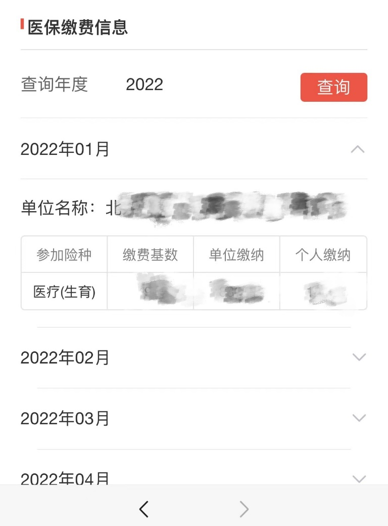 第十一步:在“医保缴费信息”查询栏中,点击要查询的月份,会出现一份电子表单,您可以看到医疗(生育)的缴费金额情况,这里以2022年度1月份为例。