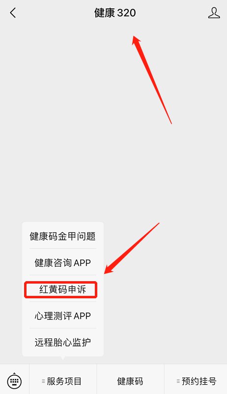 点击“红黄码申诉”或者发送“申诉”点击链接