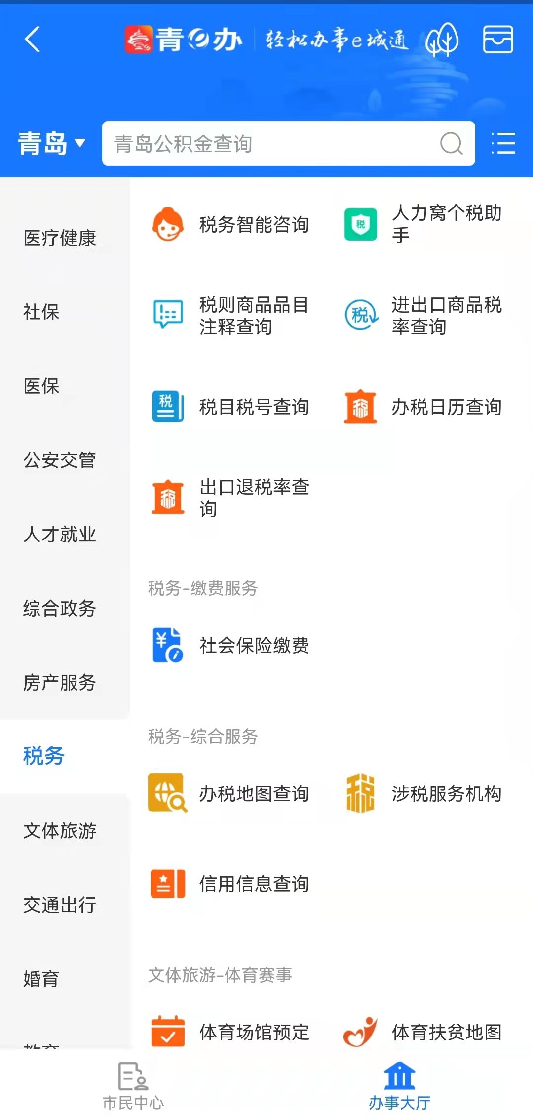 各区、市办税服务厅、社保大厅税务窗口、政府综合服务大厅税务窗口;