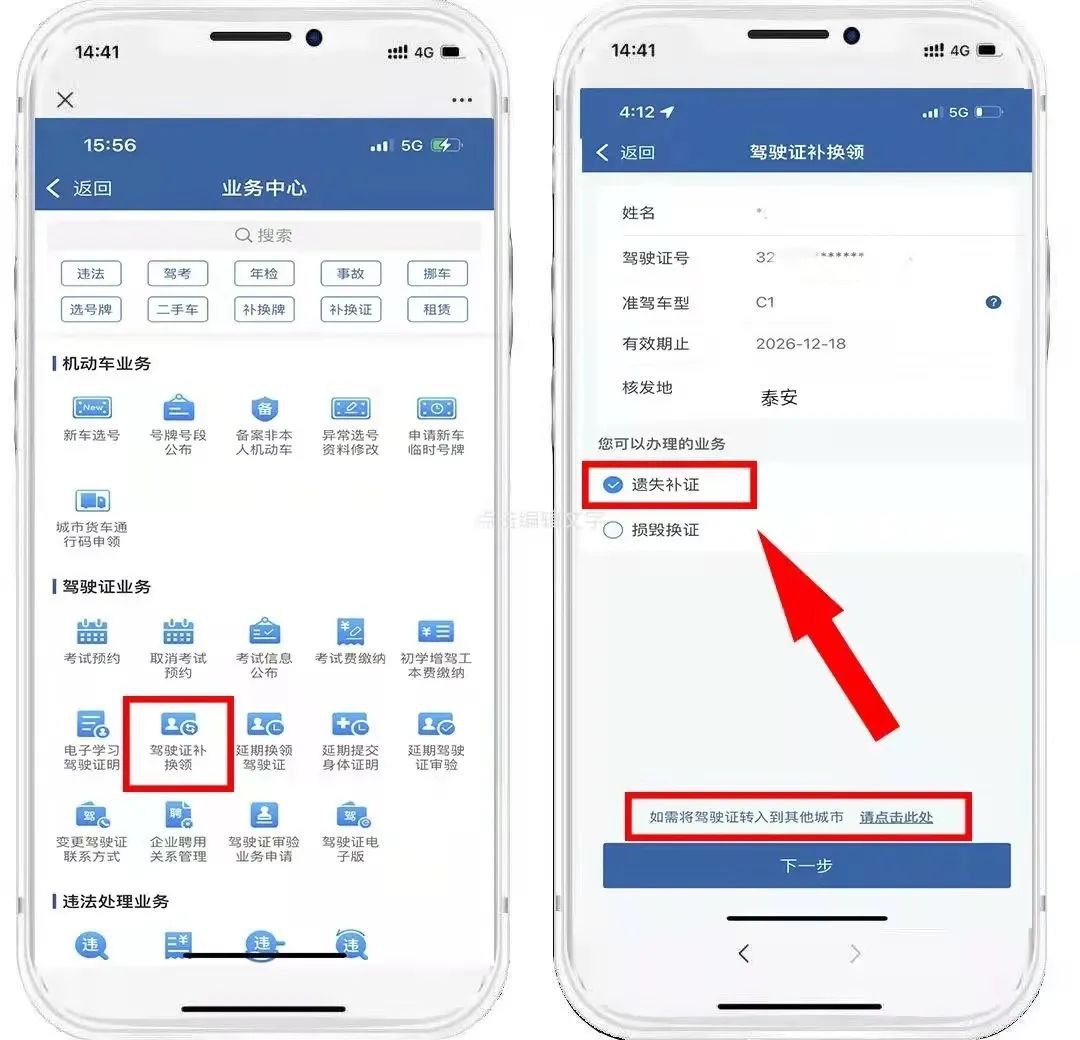 选择【驾驶证业务】模块里的【驾驶证补换领】,一步步按提示要求进行操作
