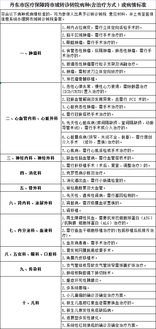 丹东可以直接在定点医疗机构办理转诊手续的种目录