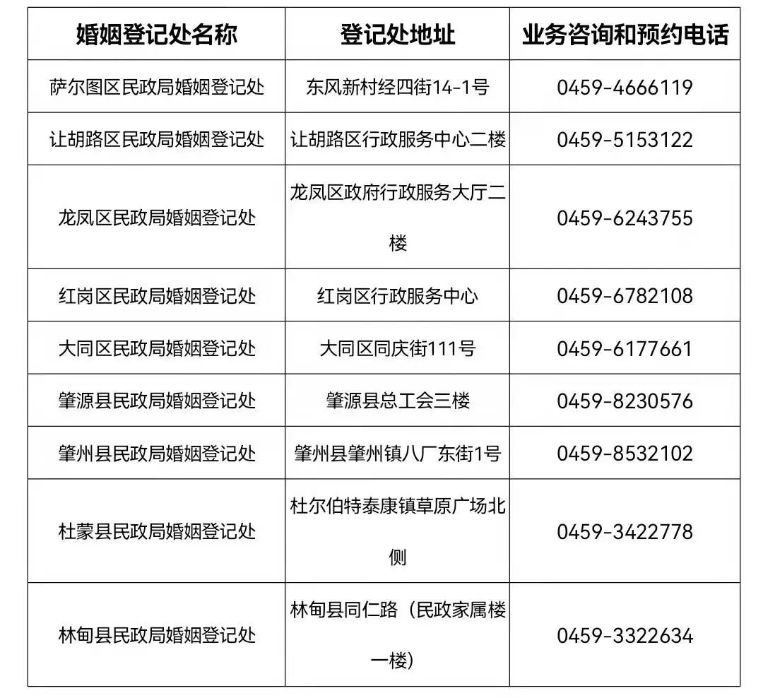 从12月15日开始大庆实行内地居民婚姻登记“市内通办”,只要双方或一方常住户口所在地为大庆市(含四县)的居民,就可以选择市域内任一内地居民婚姻登记机关办理内地居民结婚登记和离婚登记业务。