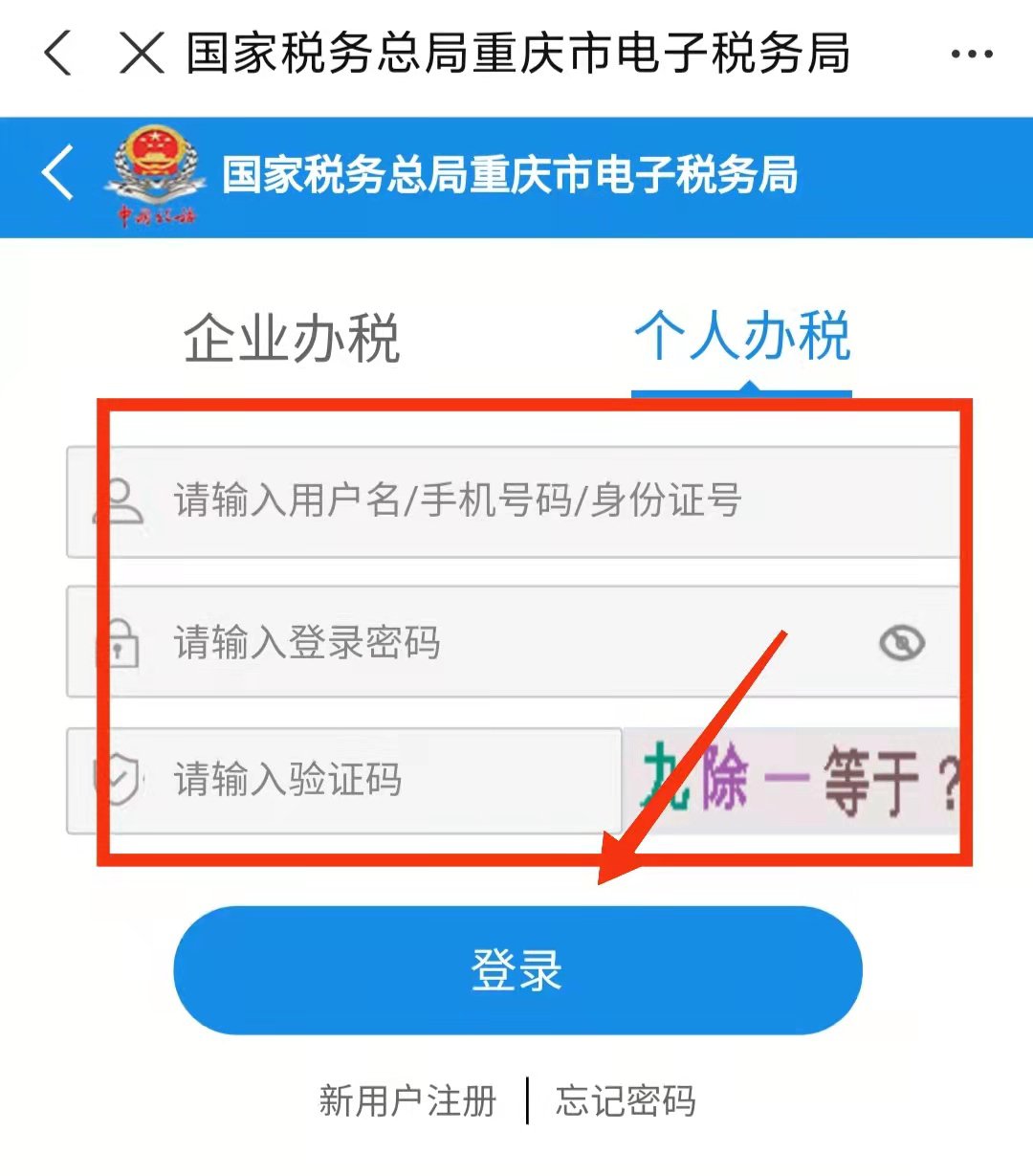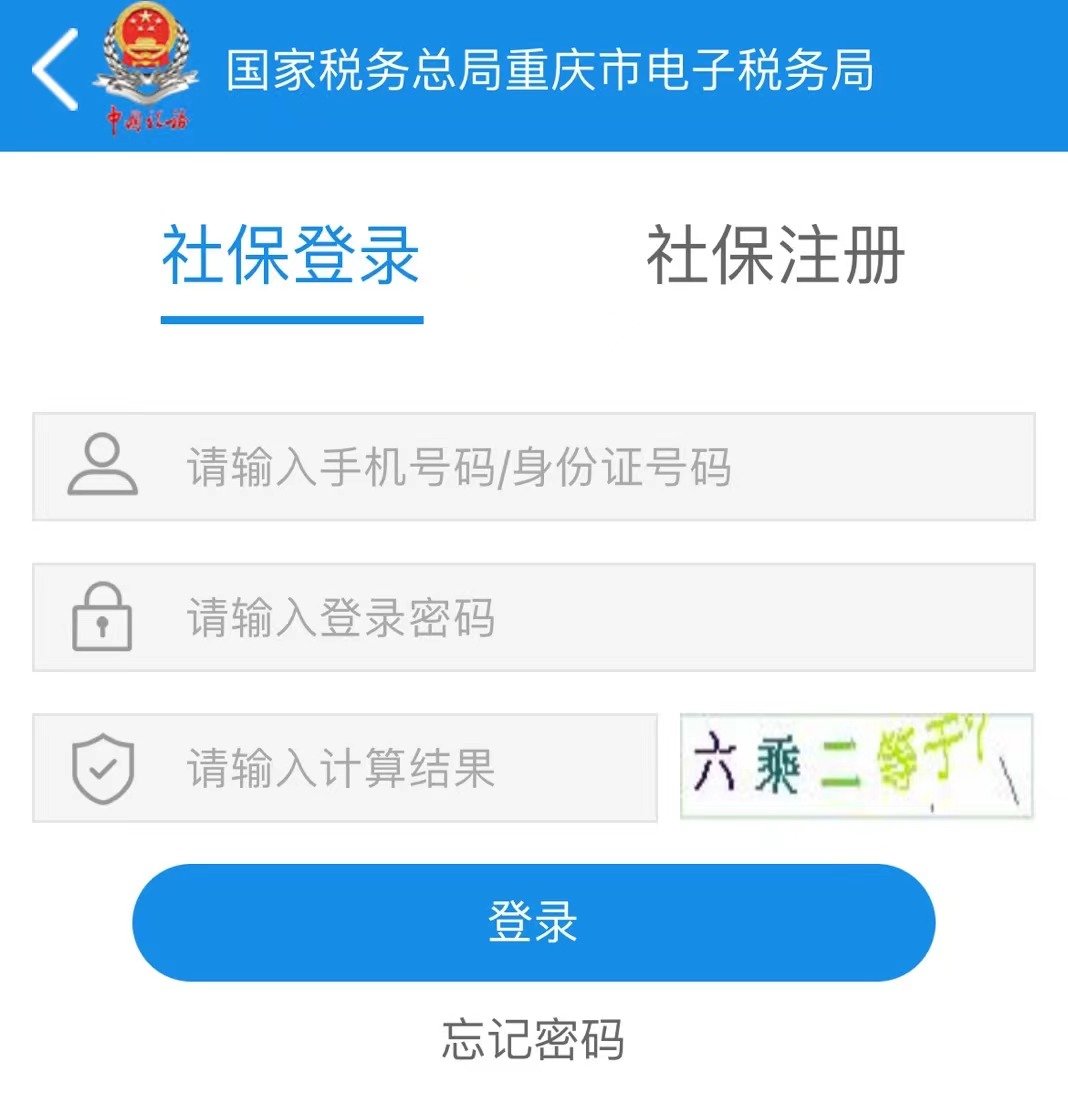 1、点击扫码关注“重庆税务”公众号。关注后点击底部“网上办税”,选择“居民社保”。
