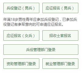 在这个页面中,会告知我们报名时间以及参军的政策说明,建议看后,点击“进行兵役登记”,迈出你军旅生涯的第一步吧!