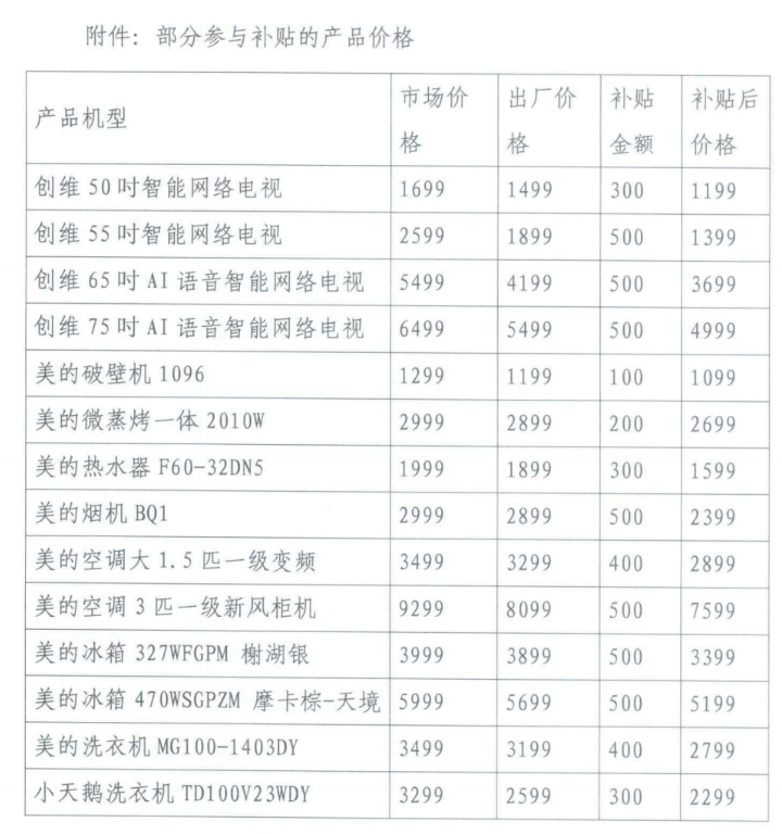 产品价格:全场参与补贴产品1000多种,部分产品补贴价格见附件。