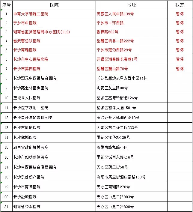 根据疫情防控要求,长沙南雅医院、宁乡市中医院、中南大学湘雅二医院、长沙中心医院北院、长沙市四医院、湖南省监狱管理局医院、湖南省武警总队医院等7家医院暂停办理驾驶人体检,恢复时间另行通知。同时,摆放在长沙交警各车管分所业务大厅的自助体检机已全部暂停使用,疫情期间驾驶人体检只能前往指定医院办理。vr4育儿早教网