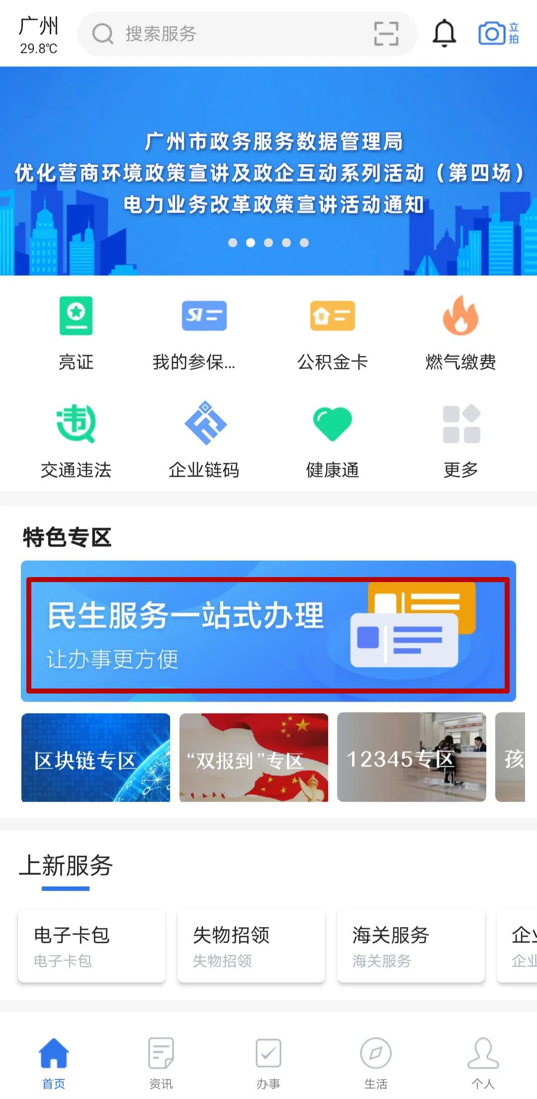 1、在“穗好办”APP“民生服务一站式办理”, 进入“房屋租赁登记备案”。
