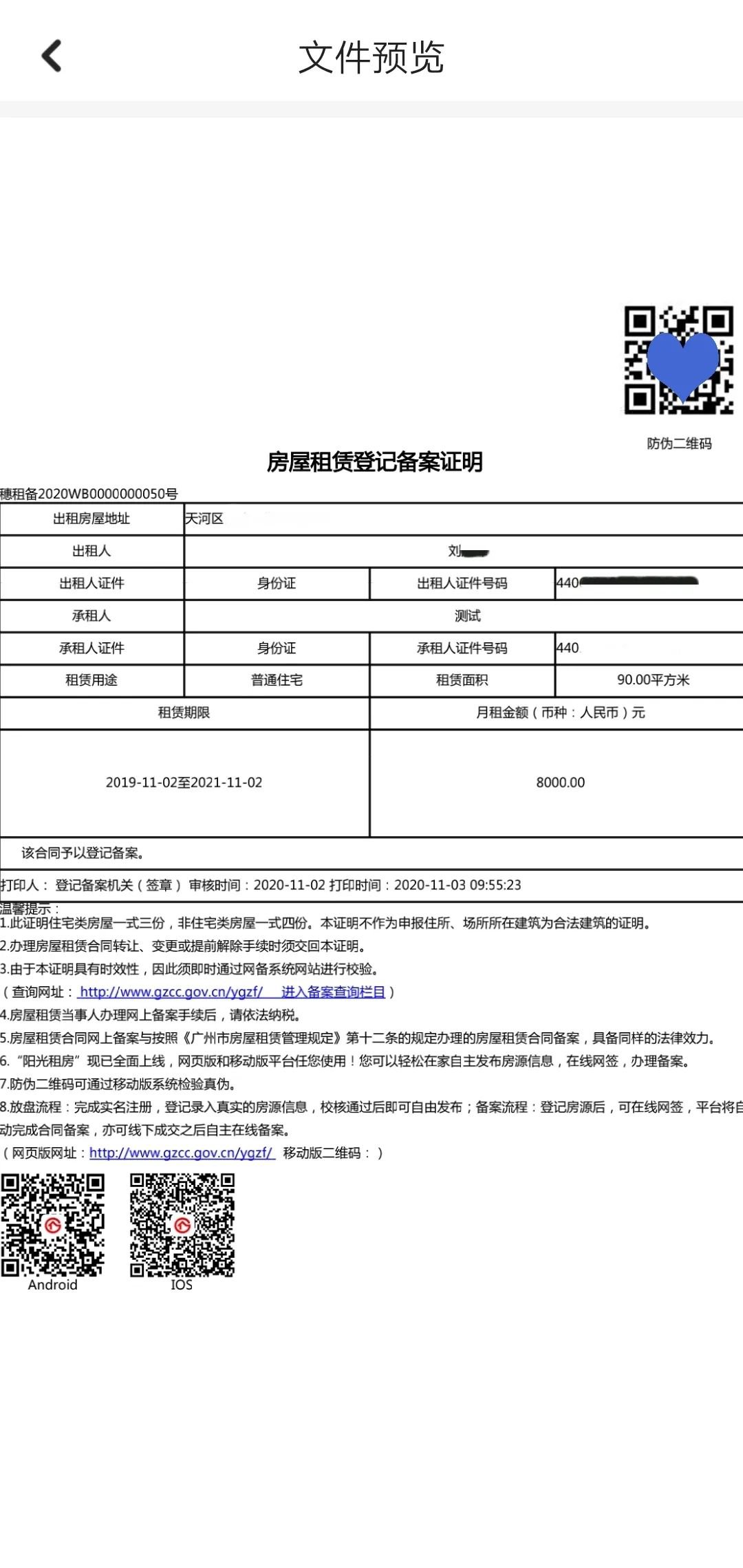 备注:提交的资料应当真实、合法、有效,不得隐瞒真实情况或者提供虚假材料。提供虚假信息或隐瞒真实情况的,不予备案。备案成功后可登录“阳光租房”在线打印备案证明,也可到所在地街道办打印。